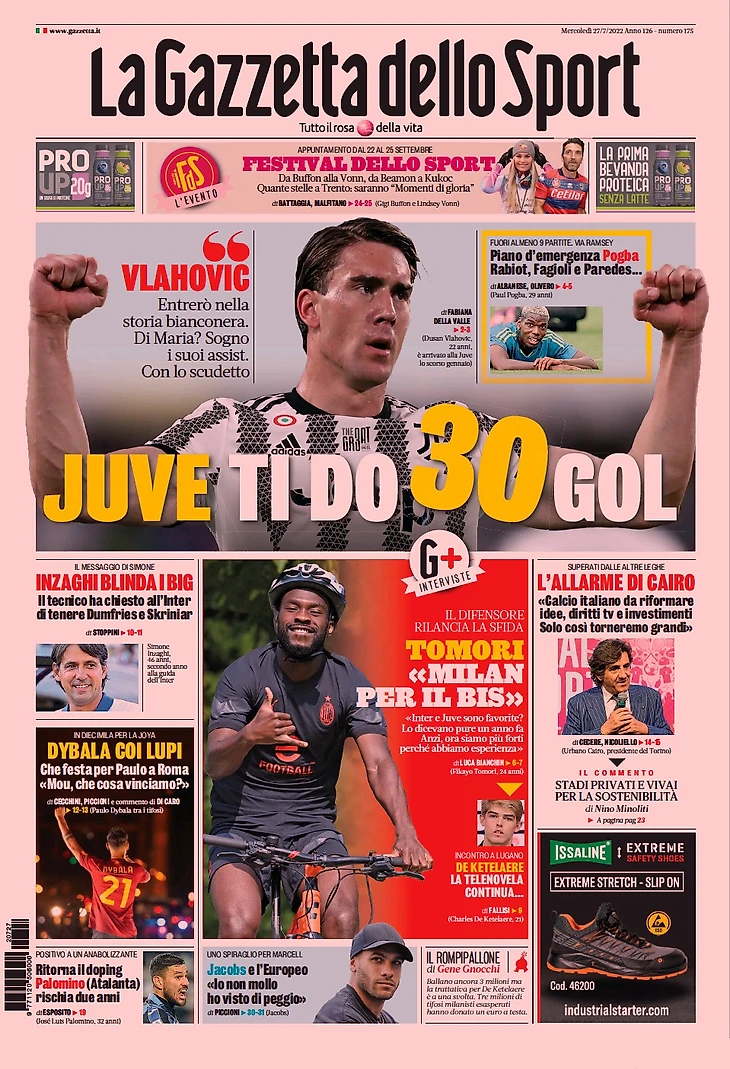 «Рома», я помогу тебе побеждать. Заголовки Gazzetta, TuttoSport и Corriere за 27 июля