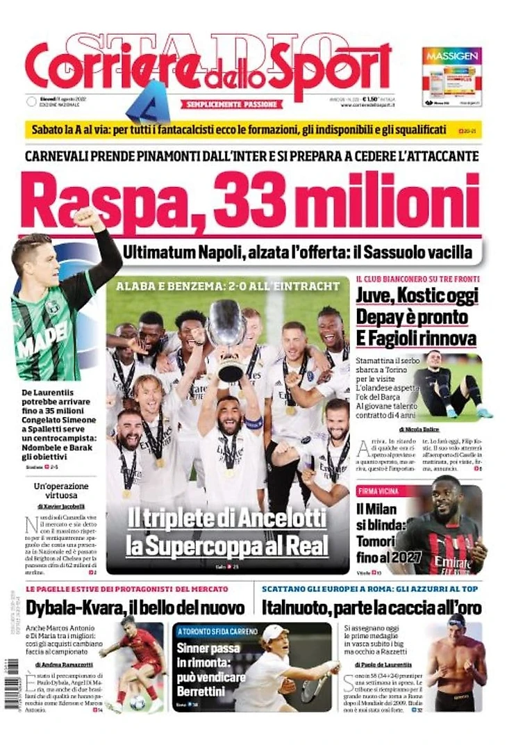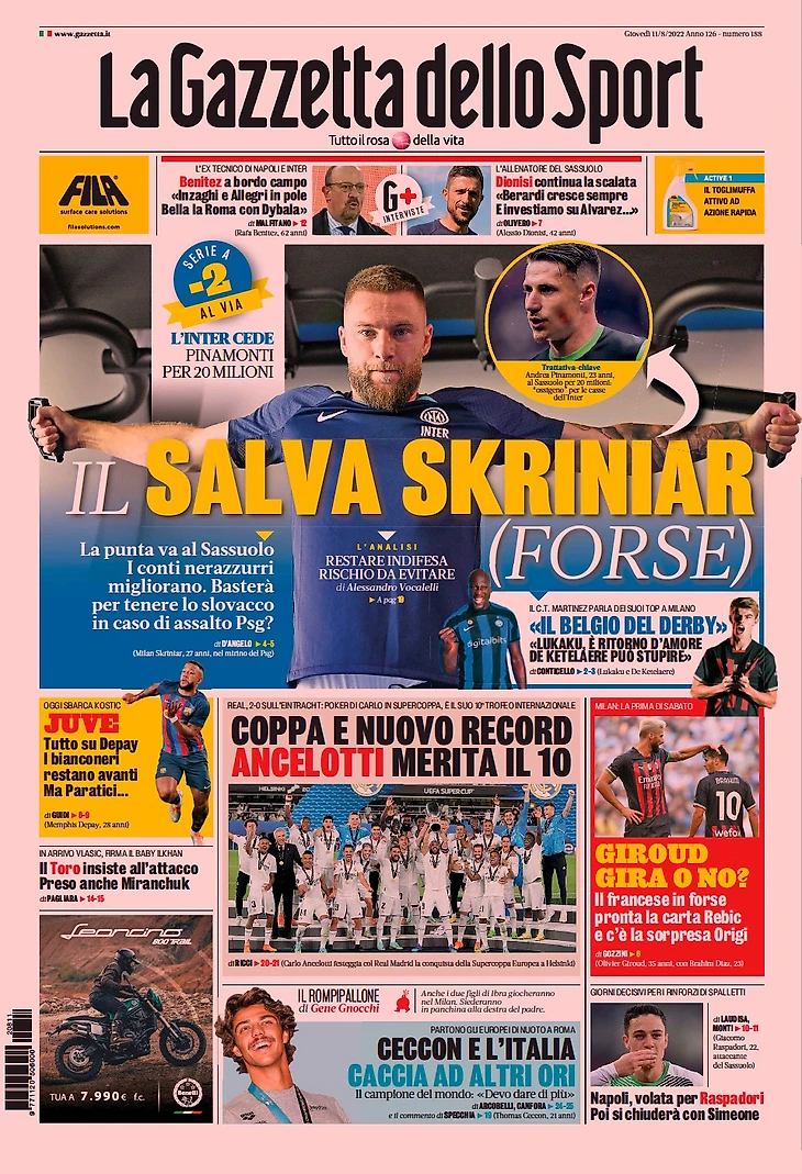 Спасти Шкриньяра (возможно). Заголовки Gazzetta, TuttoSport и Corriere за 11 августа