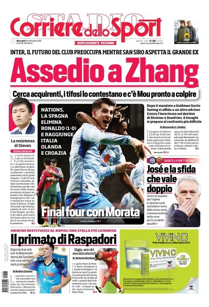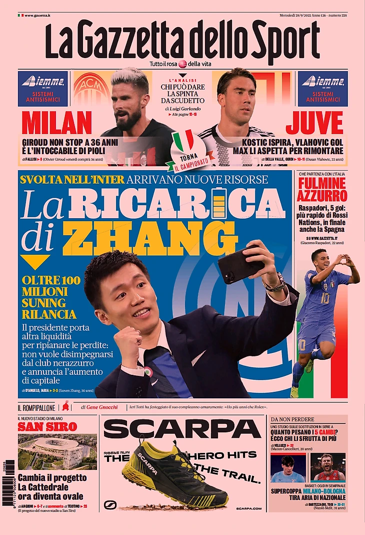 Перезарядка Чжэна. Заголовки Gazzetta, TuttoSport и Corriere за 28 сентября