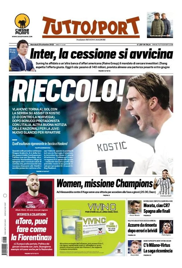 Влахович возвращается к голам за Сербию с ассиста Костича (2:0 против Норвегии). После Бонуччи в качестве главного героя Италии, ещё одна хорошая новость из сборных для «Юве»: новый взлёт для возобновления.