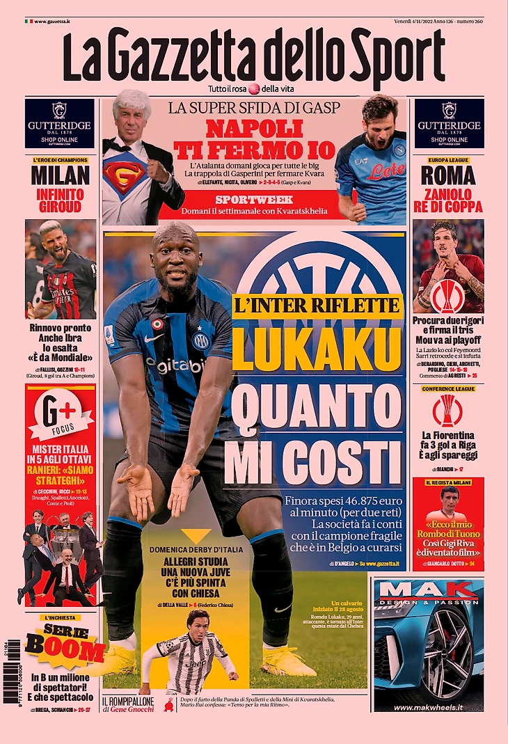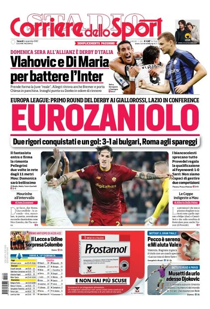 ЕвроДзаньоло. Заголовки Gazzetta, TuttoSport и Corriere за 4 ноября