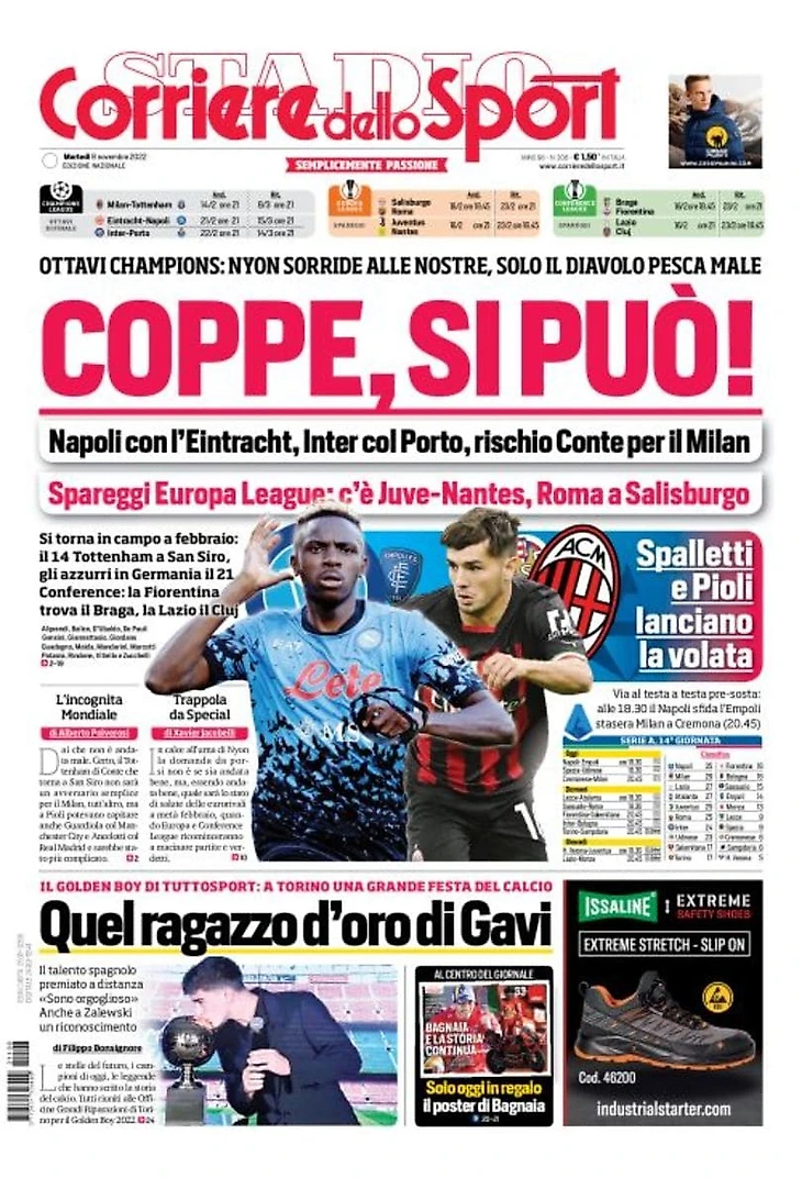 Жеребьёвка: Аллегри выловил французов, как Липпи в 96-ом. В Лиге Чемпионов «Наполи» и «Интер» избежали топов: против «Айнтрахта» и «Порту» можно играть. Пересечение с Конте не пугает Пиоли: «Тоттенхэм» силён, «Милан» – не меньше». Но история против Россонери.