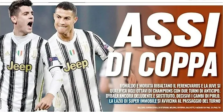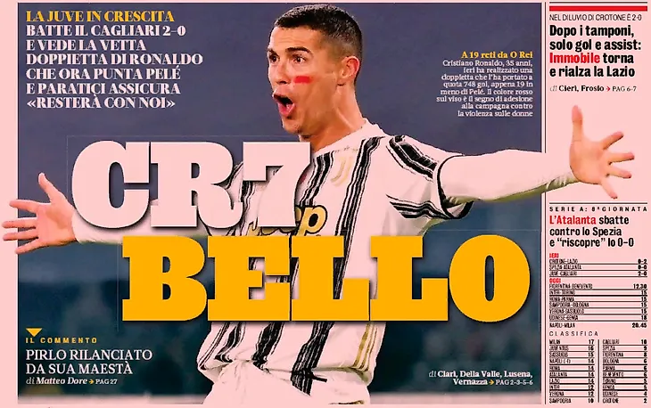 Автор Andresito CR7 хорош. Заголовки Gazzetta, TuttoSport и Corriere за 22 ноября