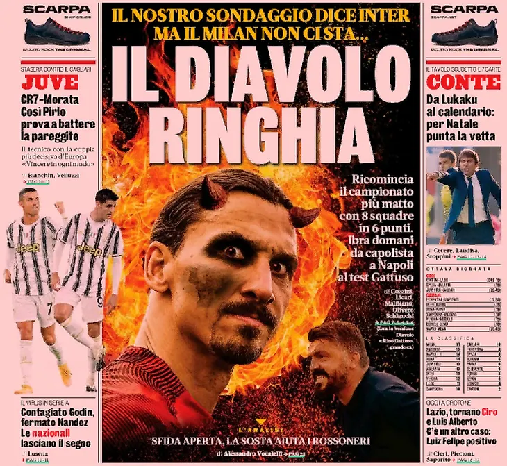 Автор Andresito Рык Дьявола. Заголовки Gazzetta, TuttoSport и Corriere за 21 ноября