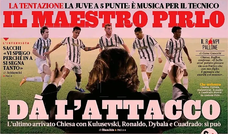 Автор Andresito Маэстро Пирло даёт атаку. Заголовки Gazzetta, TuttoSport и Corriere за 7 октября