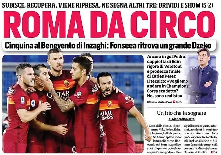 Автор Andresito «Рома» из цирка. Заголовки Gazzetta, TuttoSport и Corriere за 19 октября