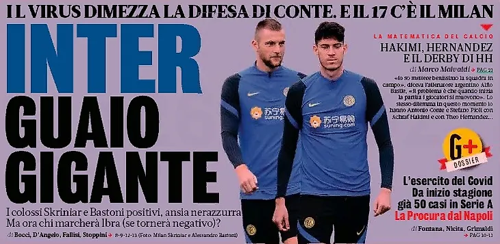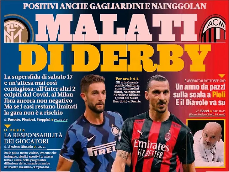 Автор Andresito Заболевшие Дерби. Заголовки Gazzetta, TuttoSport и Corriere за 9 октября