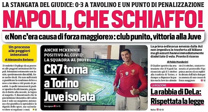 Автор Andresito «Наполи», какова пощёчина! Заголовки Gazzetta, TuttoSport и Corriere за 15 октября