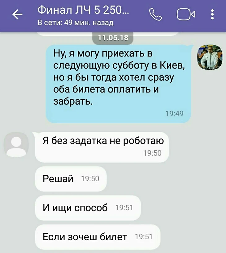 Один из барыг на предложение встретиться лично, чтобы я мог оплатить и сразу же забрать билет, отреагировал крайне нервно: