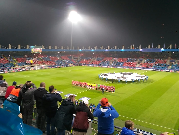 За несколько минут до матча чехи поют гимн «Виктории» – или, как они её ласково называют, «Викторки». Во время гимна Лиги чемпионов трибуны окрашиваются в красно-синие цвета. Наверное, болельщикам ЦСКА было приятно видеть такой перфоманс месяц назад.