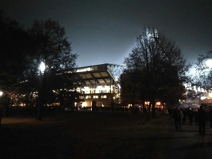 Арена небольшая, но уютная: две трибуны за воротами, по центру тоже две – одна поменьше, вторая побольше (двухъярусная). Первый ярус – поближе к скамейкам запасных и полю – занимают Очень Важные Персоны, журналисты и люди, не пожалевшие примерно 200 евро на билет. На второй ярус билеты стоят от 100 евро – и их раскупили полностью.