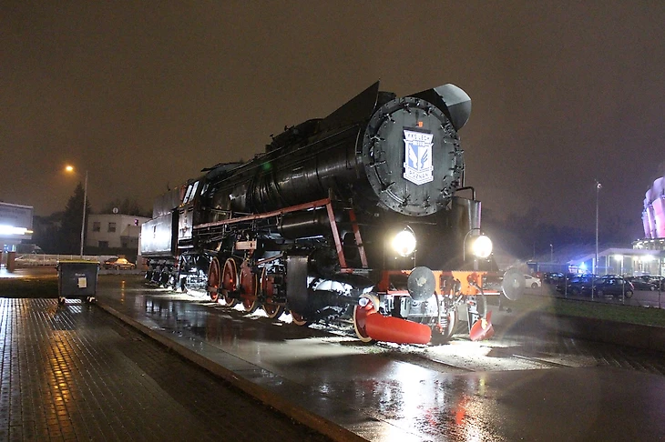 Здесь вообще много железнодорожной тематики. Ладно, локомотив перед стадионом – это нормально, многие так делают. Но как вам такая афиша матча перед стадионом?