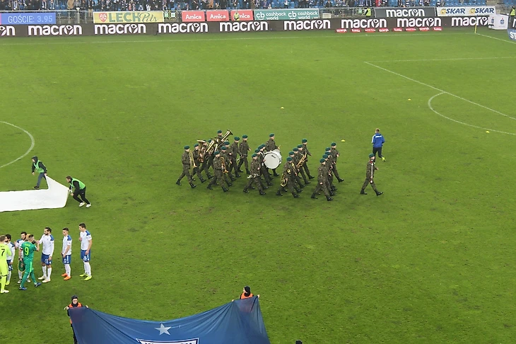 Матч стартует. Вскоре выясняется, что пение гимна – ещё не всё. Очень скоро ультрас «Леха» начинают отсчёт.