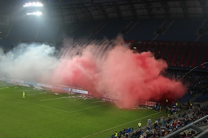 Снова обратный отсчёт, снова пиротехника, снова весь стадион в дыму, снова «Dziekuje!». «Шлёнск» готовился использовать последний шанс – навес со штрафного. Но судья свистит, чтобы дождаться, пока дым развеется. Здесь можно было бы позлиться на фанатов, но, по сути, они сделали всё правильно – сбили настрой у «Шлёнска», разбавили концентрацию.