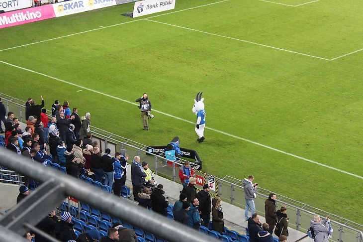 Играет «Лех» на 46-тысячной арене. Стадион реконструировали к Евро-2012 – и теперь он прекрасен. Лёгкая асимметрия ощущается не сразу: только через какое-то время понимаешь, почему стюард говорил «вам на малую трибуну».