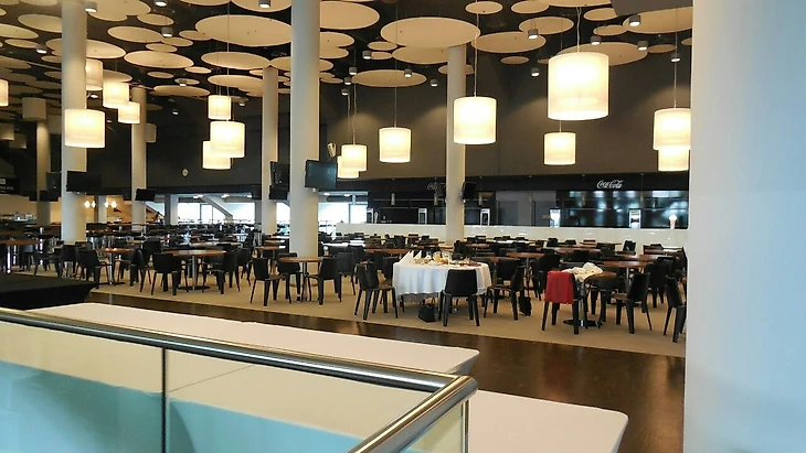 За турникетом нашлась только одна открытая дверь – на небольшую лестницу, которая вывела меня на кухню. Кажется, местные поварята были немного шокированы, когда я появился с негромким «hello». Оттуда сразу вышел в ресторан. Так вот ты какая, VIP-ложа с видом на стадион!