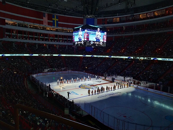 И ведь не было бы такого сюрприза, если бы заранее погуглил! «Глобен Арена» заставила нас всех слегка обронить челюсть. Нас – это нескольких болельщиков «Тампы» и пару любителей хоккея. Почти все мы впервые шли на матч НХЛ и, кажется, немного волновались. Наверное, у каждого сбывалась мечта.