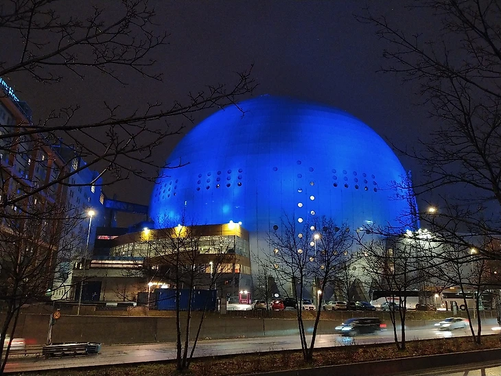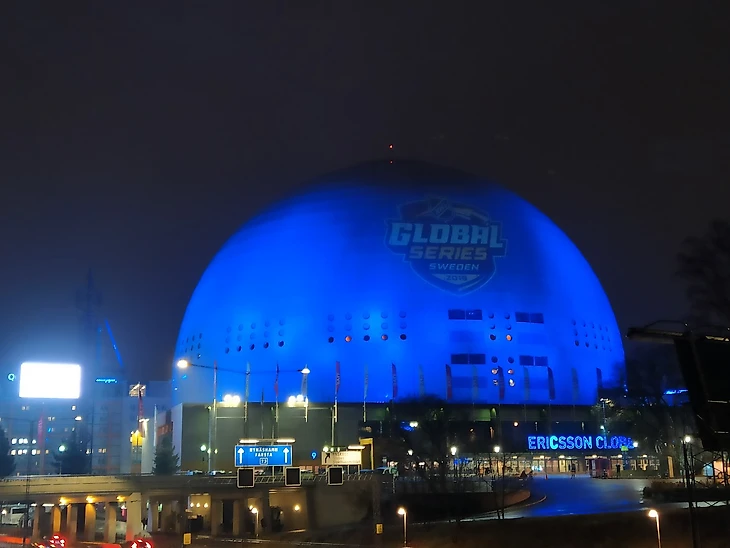 Обычно я стараюсь узнать чуть больше про арену, на которой будет матч, но в этот раз не стал. То ли забыл, то ли поленился – неважно, ведь получилось идеально. Мы шли на матч «Баффало» – «Тампа» в Стокгольме и обсуждали всё подряд. Взору предстала освещённая синим цветом сфера.