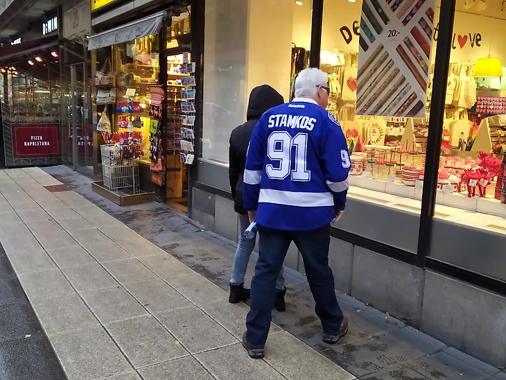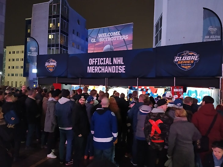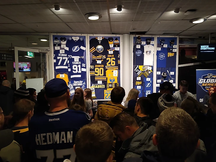 Например, в день матча в центре Стокгольма я повстречал несколько сотен человек с атрибутикой «молний» – из Швеции, Норвегии, России, Германии, Финляндии, США, Дании и Казахстана. Единственный найденный мною человек в форме «Баффало» оказался хоккеистом на постере к матчу.