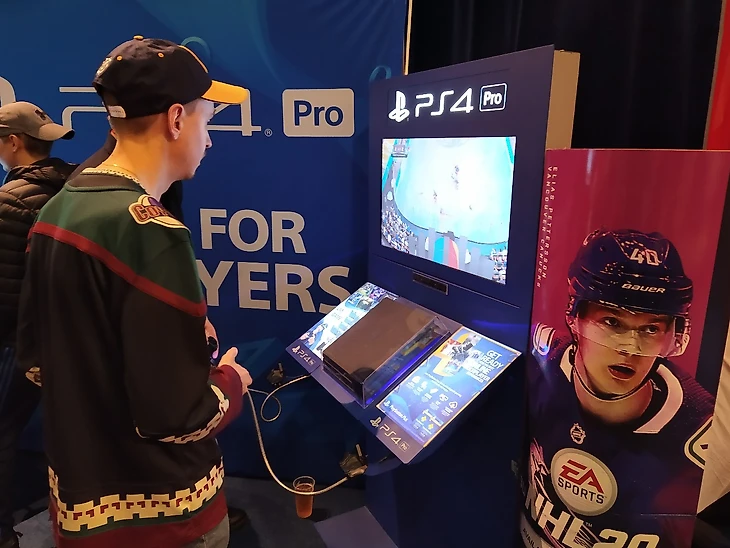 Привычная для большинства клубов КХЛ бросковая зона не заслуживает внимания дольше, чем в одном предложении. А вот зона с PS4, в которой и дети, и взрослые с удовольствием рубились в хоккей – о да, это кайф!