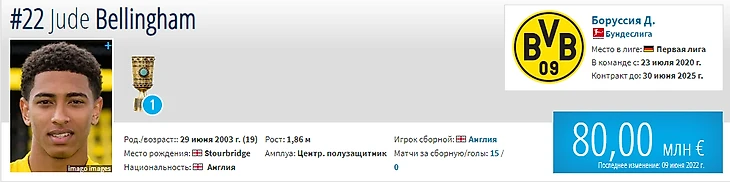 1)Джуд Беллингем (Боруссия Дортмунд)