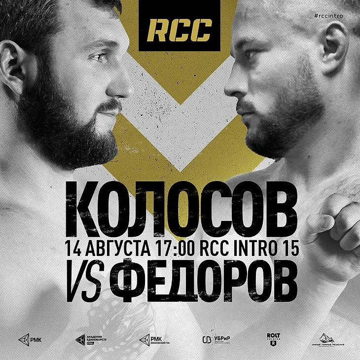 Максим Колосов (11-3-1) и Юрий Федоров (7-3-1) проведут бой по правилам профессиональных смешанных единоборств в карде RCC: Intro XV 14 августа в Екатеринбурге.