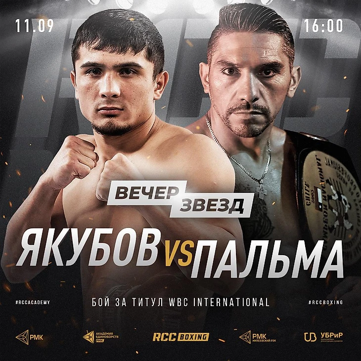 Поединок между Мухаммадом Якубовым (17-0, 9 КО) и Кристианом Пальмой (31-10-2, 7 КО) пополнил состав пар турнира по профессиональному боксу, который состоится 11 сентября в Екатеринбурге на арене Академии единоборств РМК.