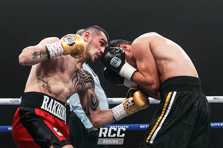 В восьмом поединке Вечера бокса от RCC Boxing Promotions в ринге сошлись Шавкат Рахимов (Екатеринбург, 15-0-1) и Сардор Музаффаров (Чиназ, Узбекистан, 4-4-0). Они провели десятираундовый бой во втором полулегком весе (до 59 кг).