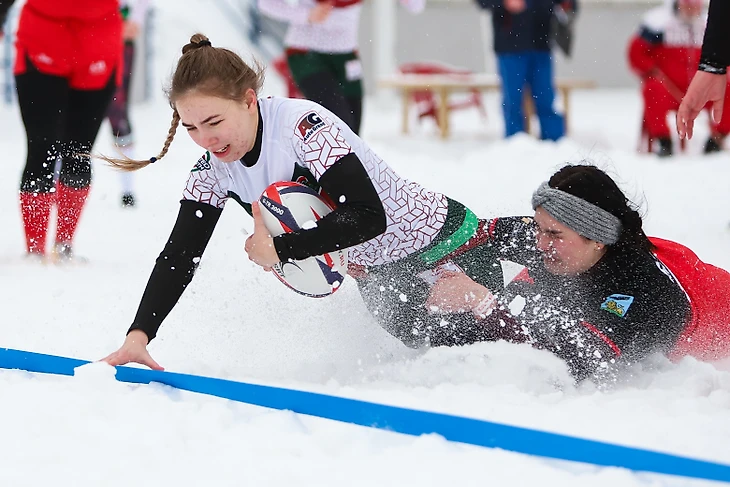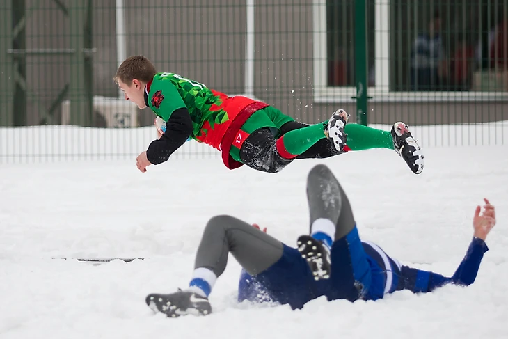 При упоминании словосочетания «снежное регби» может показаться, что это не более чем шуточный вид спорта типа болотного футбола или что-то около этого. Изначально идея игры в регби на снегу и была создана в качестве забавы и одного из элементов подготовки к традиционному виду – классическому регби. Не более. Однако за десяток лет регбийная «снежка» набрала в России столь огромную популярность, что теперь доросла до признания официальным видом спорта в стране. И рубятся в неё и мужские, и женские команды. Смотрится это всё максимально классно и аутентично – со своей динамикой, спецификой и атмосферой. И вот как «снежка» выглядит в деле.
