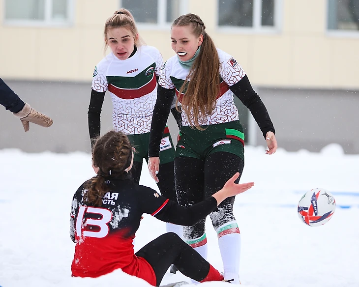 А как насчёт девушек, играющих в регби на снегу? Здесь тоже всё в порядке.