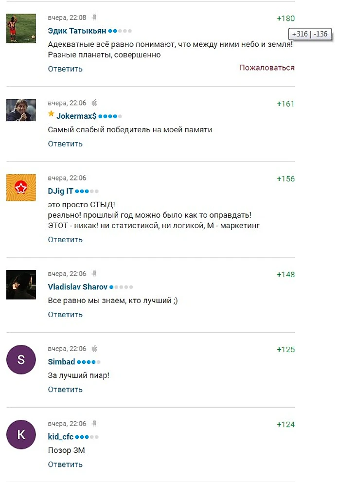 Радует одно - среди нас остались еще люди, которые могут здраво мыслить и приводить аргументы, а не визжать "аааааа лега чампионофф же"