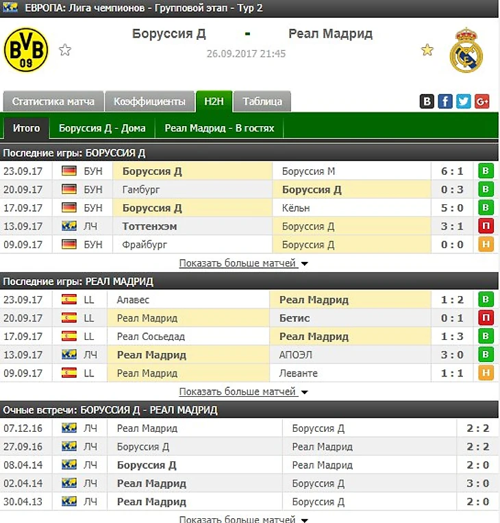 Сегодня стартует второй тур группового раунда Лиги Чемпионов. Центральный матч игрового дня состоится в Дортмунде, где местная «Боруссия» примет действующих победителей турнира – мадридский «Реал».