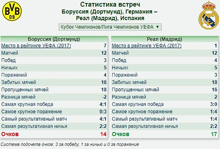 «Дортмунд» ни разу не проигрывал мадридскому «Реалу» на домашнем стадионе.