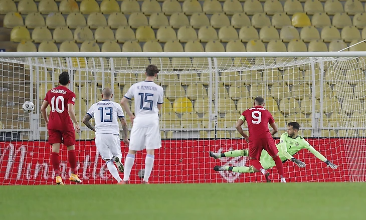 Капитан сборной был непривычно ненадежен. Да, на его счету 6 выигранных единоборств и даже один удар по чужим воротам. Но зато всего 54,4% точных пасов (из 17 длинных - только 7 точных), желтая карточка. Давит на Георгия повязка капитана?