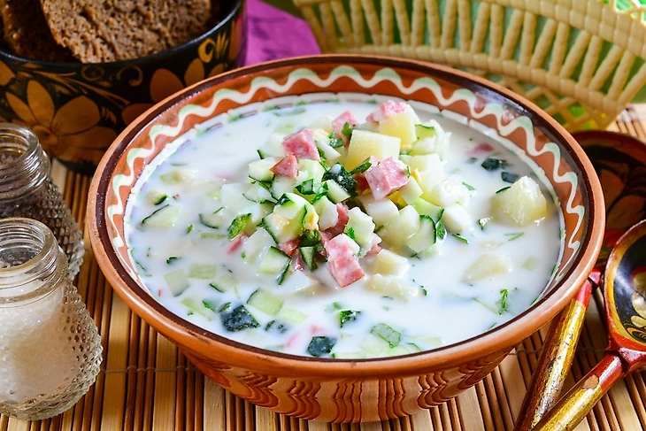 Добавки к окрошке: Подавайте окрошку с ржаным хлебом или тостами. Также можно предложить немного горчицы или хрена для тех, кто любит более острые блюда.