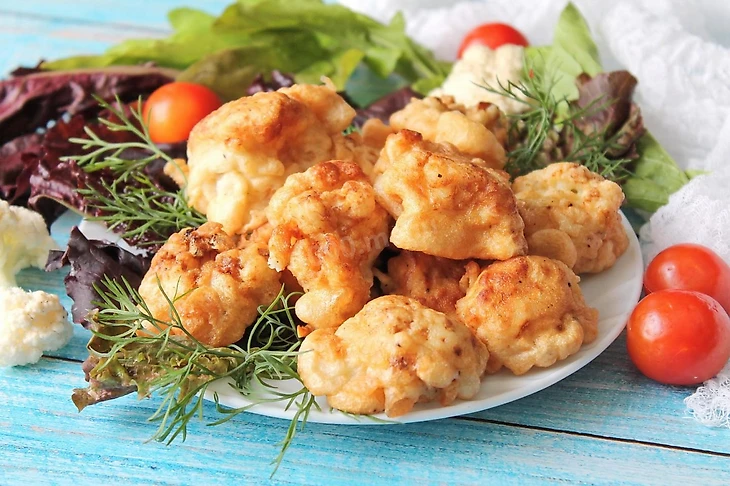 Цветная капуста в лёгком кляре готова! Подавайте её в тёплом виде. Это блюдо отлично сочетается с разнообразными соусами — попробуйте подать её с классическим сметанно-чесночным соусом для придания дополнительной свежести и пикантности.