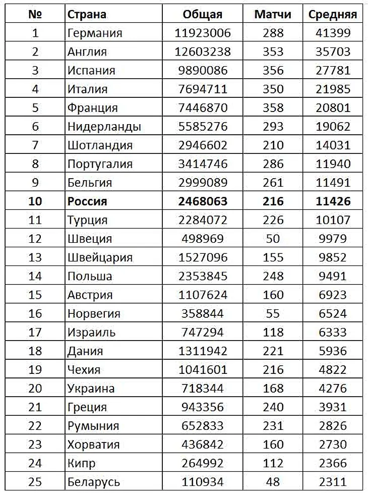 Автор Recoba78 Посещаемость чемпионатов 25 стран УЕФА