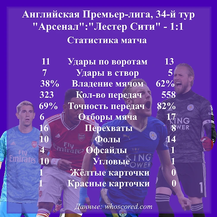 У «Лестера» было много неточных ударов. «Арсенал» старался лучше реализовывать моменты, но не получилось.