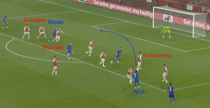 На 84-ой минуте происходит неизбежное: «Арсенал» пропускает гол. Замена сработала, Грей делает проникающую передачу в штрафную. Колашинац не накрывает соперника и не пытается прервать пас. Он снова просто отворачивается.