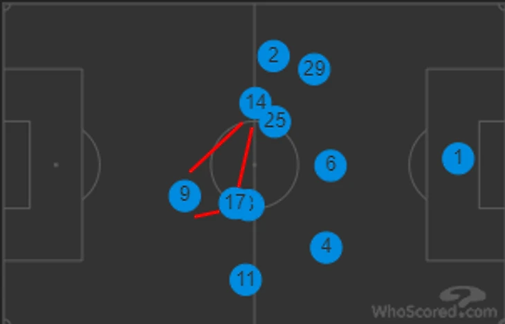 17 – Перес, 9 – Варди, 14 – Ихеаначо