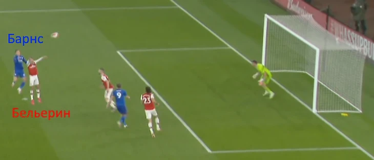 На 63-ей минуте Барнс с подачи Джастина выиграл верховую дуэль у Бельерина и пробил головой, но удар оказался несильным и вратарь «Арсенала» забрал мяч.