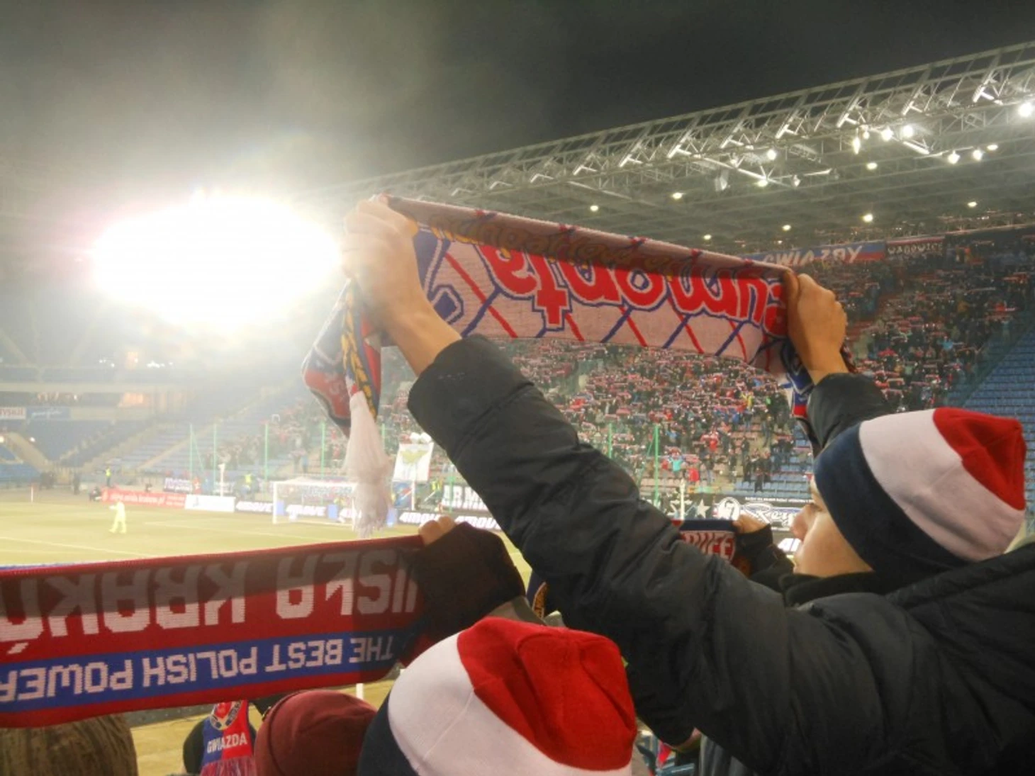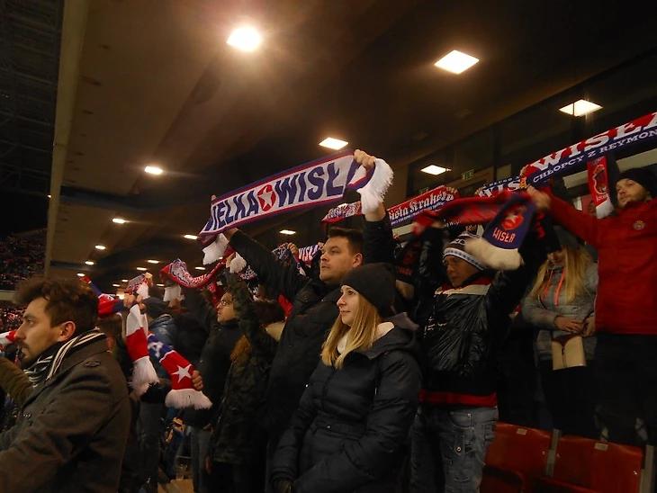 Дальше-больше. Перед каждой игрой любой «Вислы» звучит париотеческая польская песня «Jak Dlugo Na Wawelu», которую поет весь стадион! И ультрас и простые болельщики все встают и начинается очень эмоциональная церемония. Главными футбольными противниками для «Вислы», являются, конечно же «Краковия», а также Варшавская «Легия» и Познаньский «Лех». Вот на эти матчи происходит просто феерия потому что ультрас всегда придумывает красивые баннеры, хореографию, а также другие сюрпризы. Естественно на такие матчи практически всегда бывают раскуплены все билеты, а на дерби с «Краковией» их в принципе очень трудно достать. На минутку замечу, что стадион вмещает около 30000 зрителей! Вот так например встречали Варшавскую «Легию».