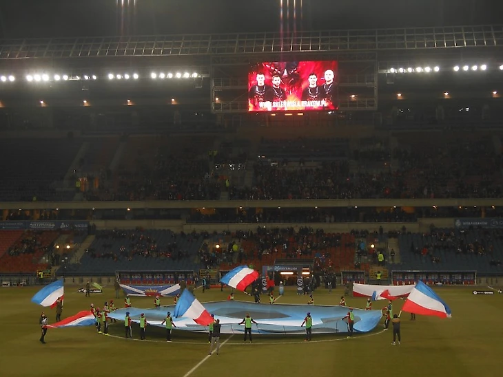 До начала матча считанные минуты, проверка паспорта, лояльный досмотр и я внутри, где уже объявляют составы команд…