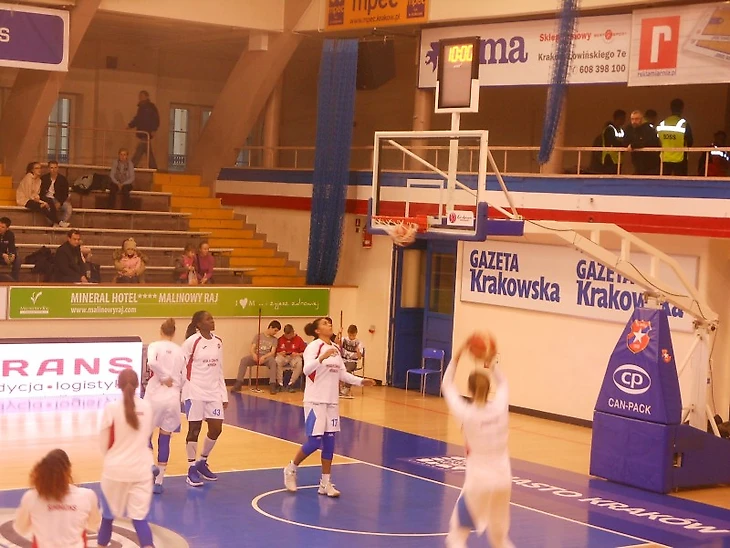 Также меня поразило количество иностранных игроков в составах команд. Не смотря на то, что женский баскетбол не очень популярен, а финансовые вливания в разы меньше чем в футболе на паркете играли, например 6 представительниц США! Кроме того, у «Вислы» играет даже девушка из Чили, рост у нее 194 см.(стоит под кольцом в центре - номер 17)
