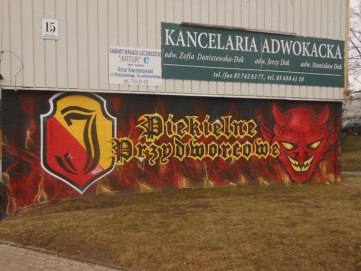 А мой путь в этой поездке начинался, как раз в Белостоке. Очень интересный город, а «Ягеллония» сейчас занимает первую строчку в местном чемпионате и борется за чемпионство. Фанаты здесь, очень активны, как и практически везде в Польше. Не смотря на несколько часов, которые у меня были для ожидании автобуса на Варшаву я потратил их исследуя город. При этом следы фанатов были найдены через 5 минут после того, как я вышел с территории вокзала)