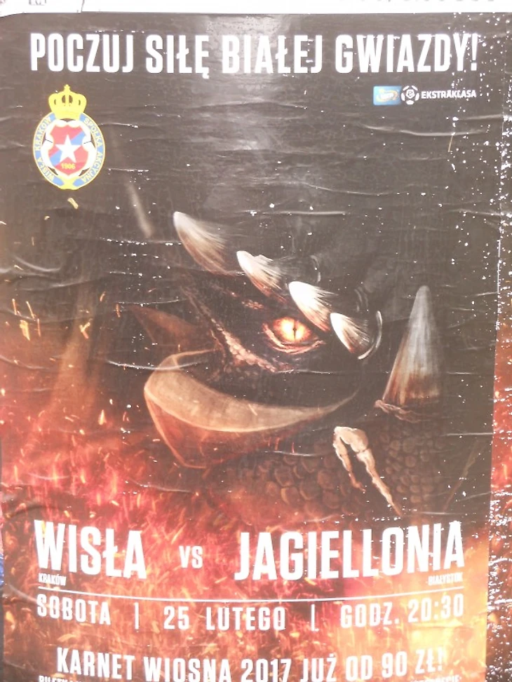 А вот и добродушный символ "Вислы" и Кракова, спустился из своего замка чтобы поддержать родной клуб.