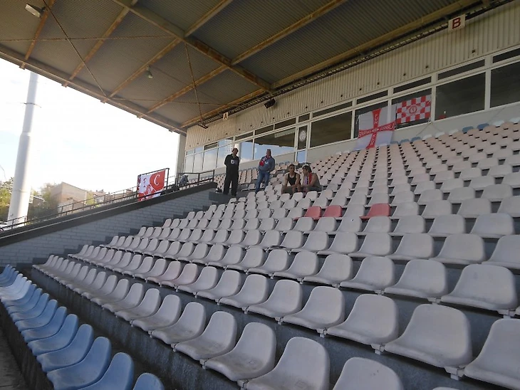 Итак, в воскресенье 8 мая Ф К «Рига» принимала лидера чемпионата – «Спартак» из Юрмалы. Билеты стоили от 1 Евро на места за воротами и 3 Евро на центральную трибуну. Однако, на деле была открыта только центральная трибуна и можно было садиться абсолютно на любое место. На стадионе были замечены болельщики «Спартака», которые старались поддерживать свою команду.