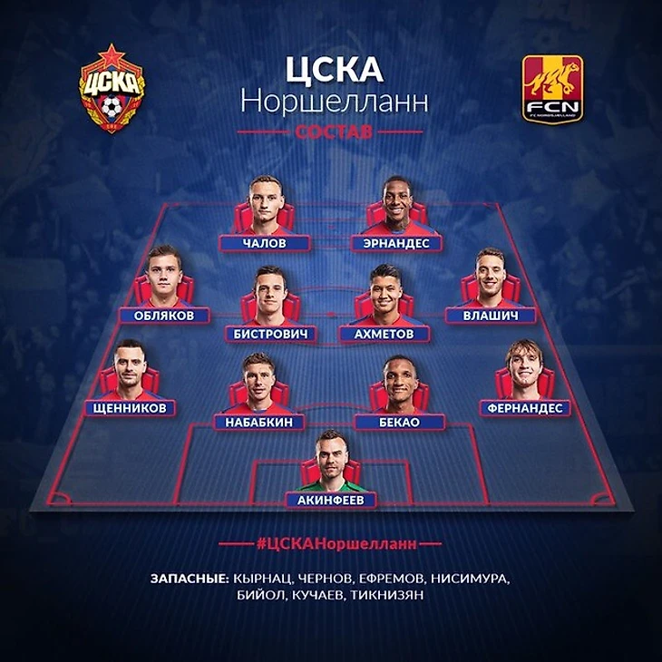 5. Второй тайм ЦСКА начал с замены Щенникова на Бийола и перехода на схему 3-4-3. Тройку центральных защитников составили Бийол-Бекао-Набабкин, Обляков ушел на позицию левого латераля. Ахметов и Бистрович остались в центре и менялись местами по ходу игры. Тройку атакующих игроков составили Влашич-Эрнандес-Чалов, при этом Никола играл чуть глубже, нежели Чалов. Такое расположение было продиктовано наигрываемой еще в первом тайме комбинации, которая включала заброс на высокого Эрнандеса и его последующей скидки на Чалова.