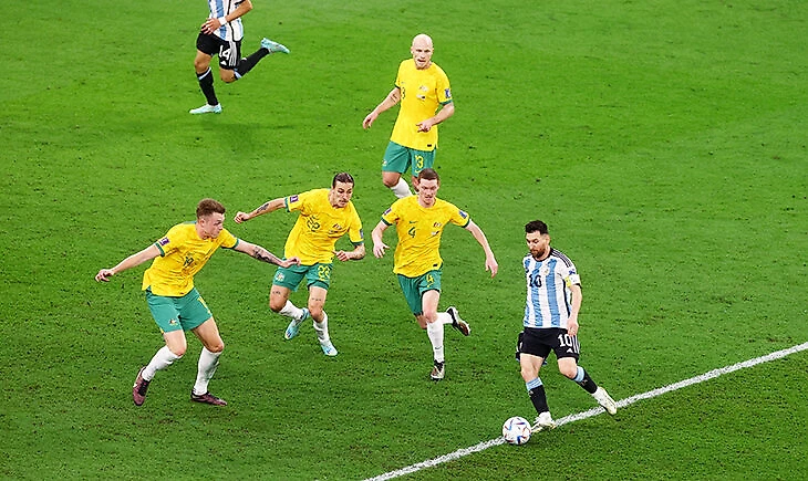 Но ему и не нужны забегания Мбаппе, радиоуправляемые пасы Бруну Фернадеша, чтобы делать магию. Просто дайте ему мяч – и Лео забьет. Не заметив трех защитников Австралии.