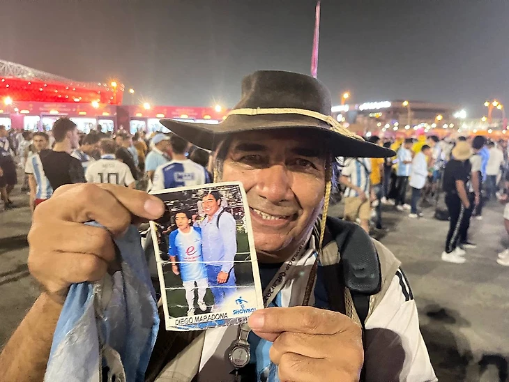 Карлос Монсалве из Патагонии мечтает о победе Месси на чемпионате мира, потому что не видел вживую чемпионств Аргентины (он ездит на все Кубки мира с 1998-го). И хранит в шляпе фотографию с Марадоной. Ждет, когда добавится второе фото – с новой десяткой Аргентины.